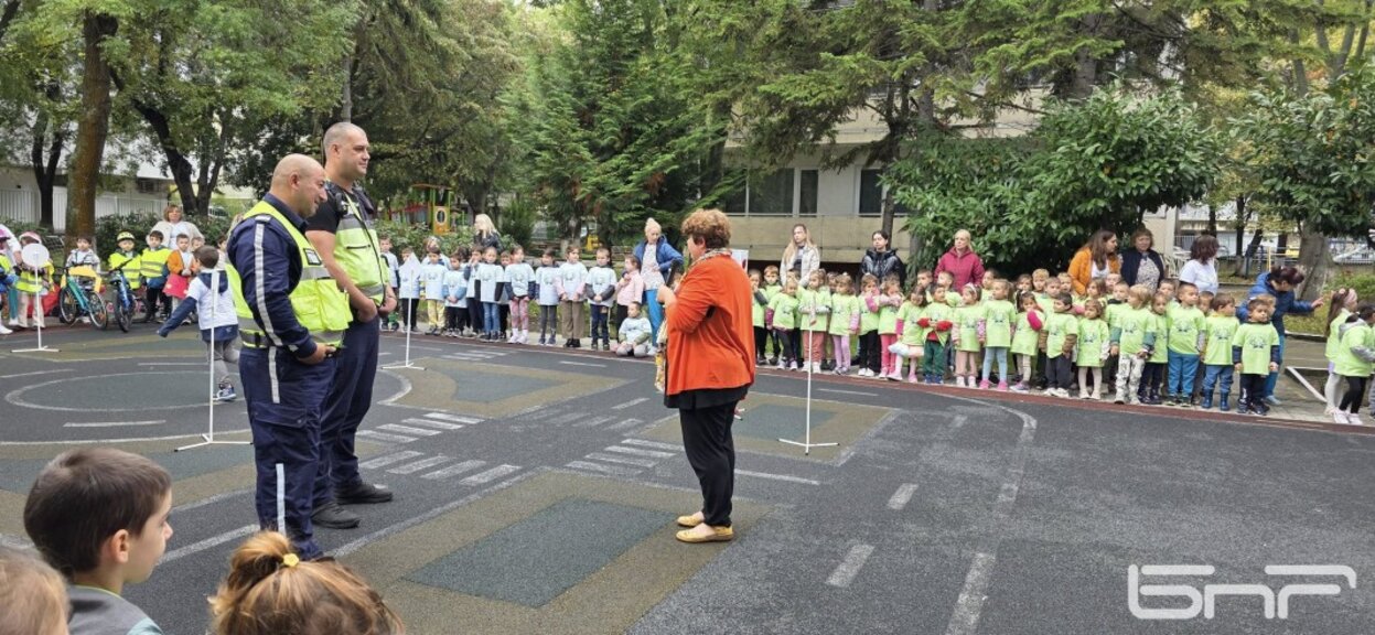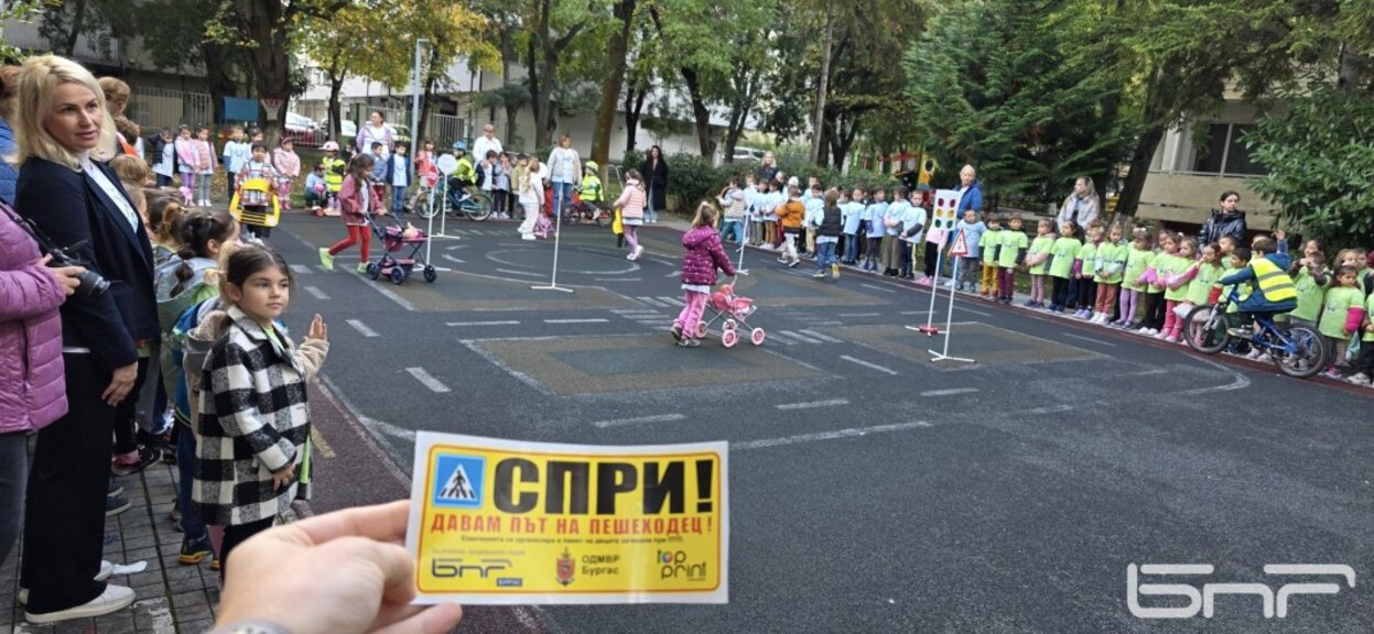 Кампанията на БНР Бургас „Спри! Дай път на пешеходец“ продължава да насочва вниманието към пътната безопасност. Екипът на общественото радио и бургаската полиция гостуваха в детска градина „Ханс Кристиан Андерсен“, където проведоха занятие с децата за основните правила на движение.