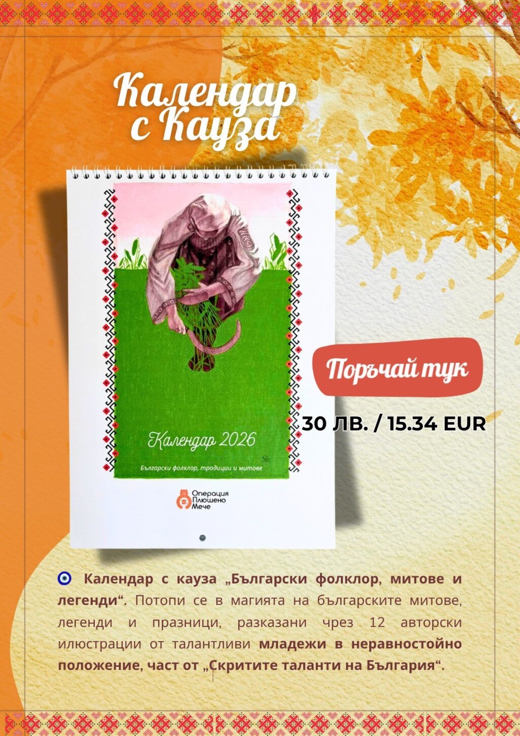 Календар с кауза за 2026 година предлага „Операция: Плюшено мече“- това е организацията, която провежда 18 поредна коледна кампания и сбъдва желанията за подаръци на хиляди деца и възрастни с увреждания, настанени в институции в цялата страна.
