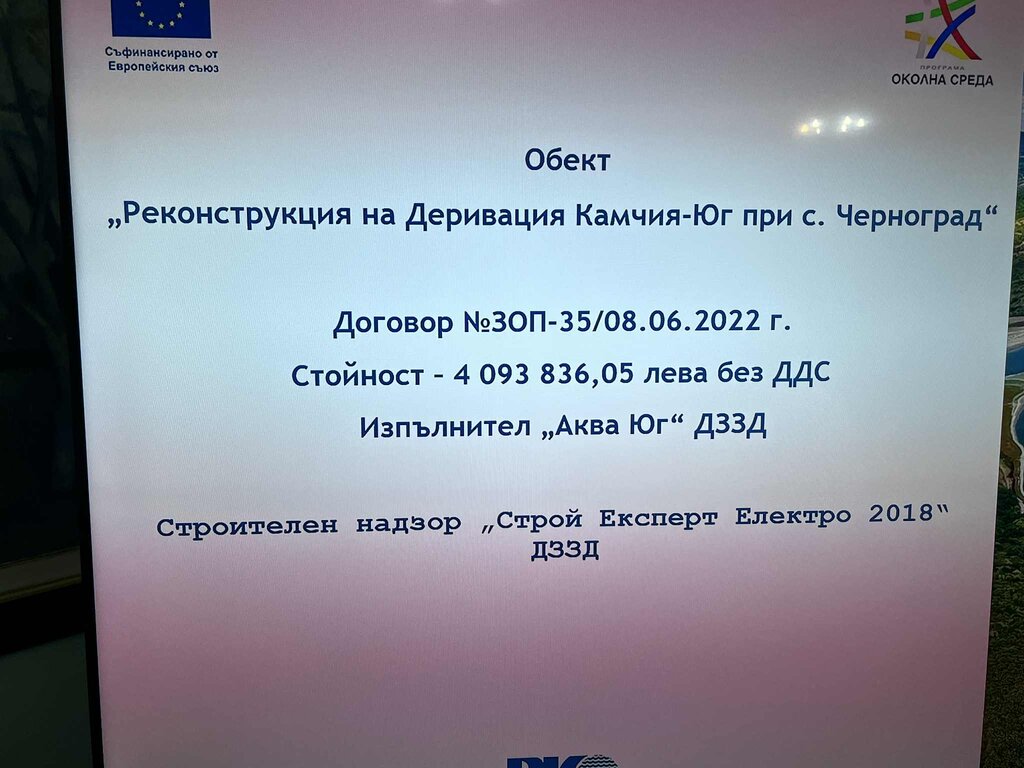 Две години след старта на строително-монтажните дейности от ВиК Бургас, вече е въведена в експлоатация реконструкцията на Деривация "Камчия-Юг" при айтоското село Черноград. Обектът, който първоначално е бил изграден преди повече от половин век сега подобрява водоснабдяването за десетки хиляди жители на две от бургаските общини - Айтос и Карнобат.