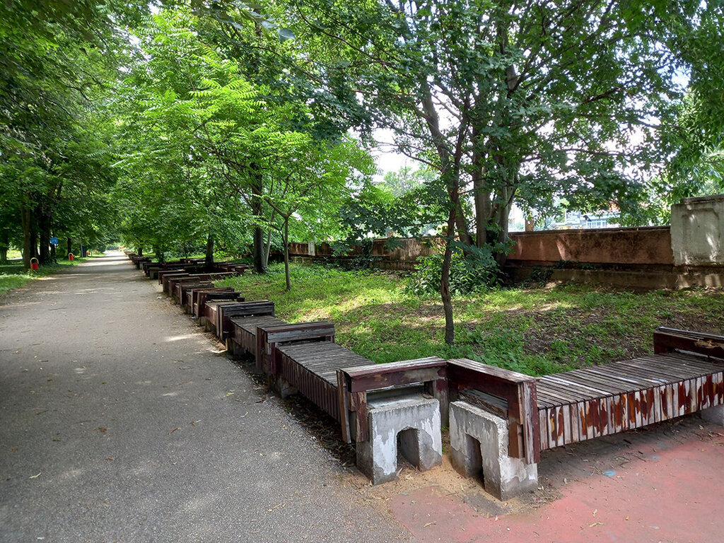 Der Park von Pazardzhik erstreckt sich über fast 30 Hektar. Hier steht auch die längste Bank der Welt (1.011 Meter), die einen Teil der Insel an ihrem äußeren Rand umrundet und 2.020 Menschen Platz bietet. Im Jahr 2011 bewarb sich die Bank für das Guinness-Buch der Rekorde, wurde aber aufgrund der kleinen Tische zwischen den verschiedenen Teilen nicht offiziell anerkannt.