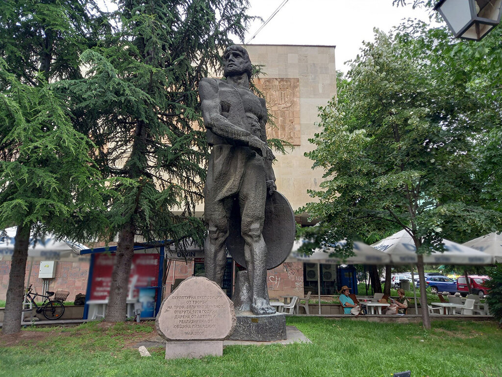 Gleich daneben steht das Wahrzeichen der Stadt - die Statue des Spartakus, ein Werk des Bildhauers Welitschko Minekow, dessen Arbeiten in Galerien und im Freien in Bulgarien, Belgien, Deutschland und den USA zu sehen sind.