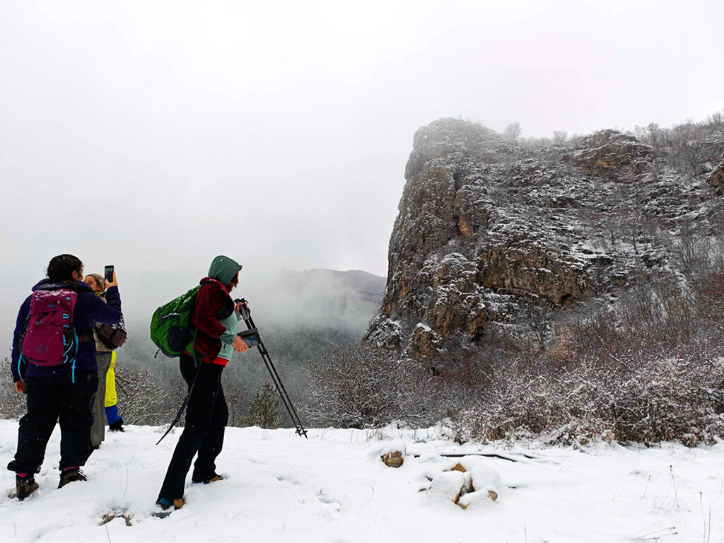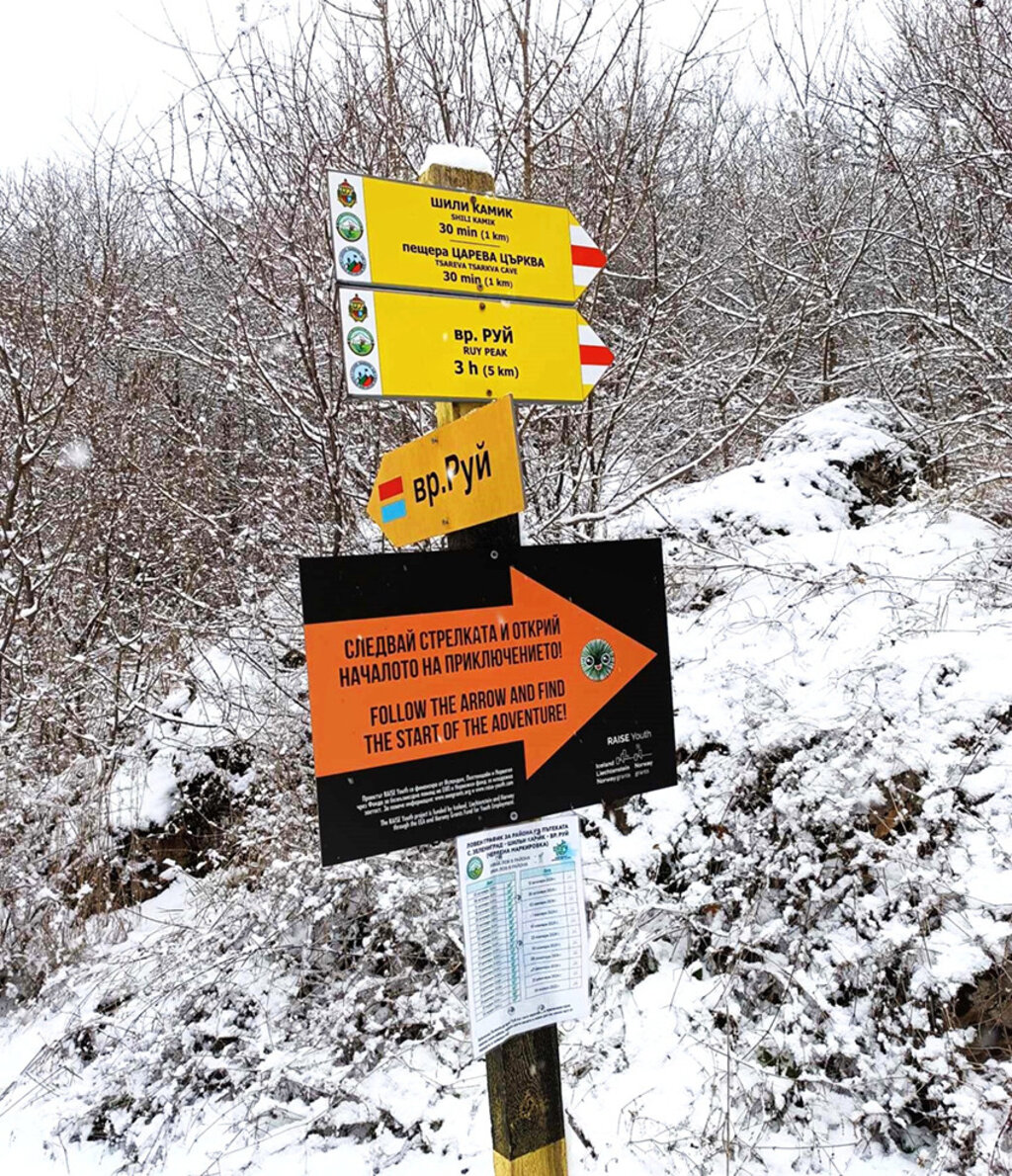 Es invierno, y la nieve cubre todos los rincones. Por un sendero sin asfaltar muy bien señalizado, gracias a un proyecto de Islandia, Liechtenstein y Noruega, nos dirigimos desde el pueblo de Zelenigrad, de la localidad de Tran, hacia uno de los hitos locales: Shili Kamiк.