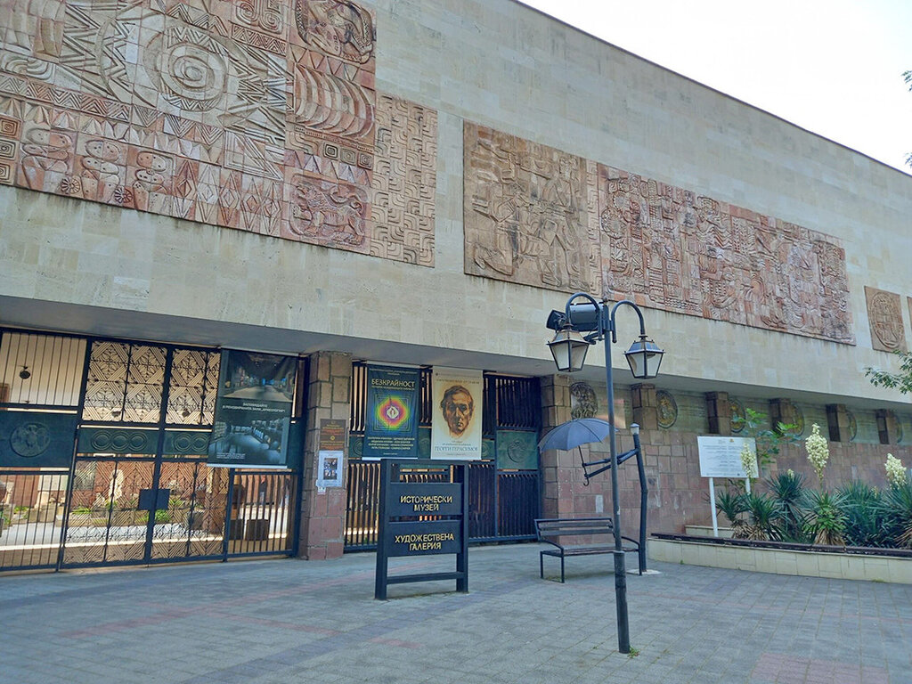 Junto al museo se encuentra el emblema de la ciudad: la estatua de Espartaco, obra del escultor Velichko Minekov. Sus trabajos pueden verse tanto en galerías como en espacios al aire libre en Bulgaria, Bélgica, Alemania y Estados Unidos.