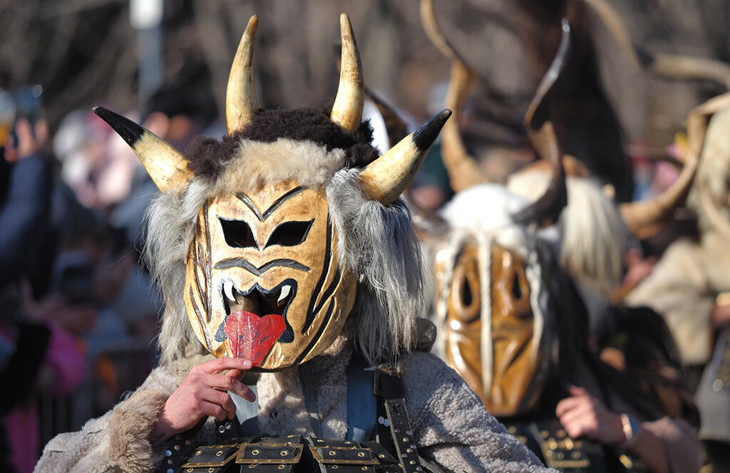 Nous essayons d’avoir des groupes différents chaque année pour qu’on puisse voir diverses traditions et divers types de masques. Nous avons des groupes intéressants de Macédoine du Nord et les Italiens aussi ont des traditions impressionnantes, très proches des nôtres. Leurs rythmes de mouvements sont différents, mais visuellement ils ressemblent à nos sourvakari et nos koukéri. Il y a aussi les Portugais qui sont assez proches du style de masques bulgare.