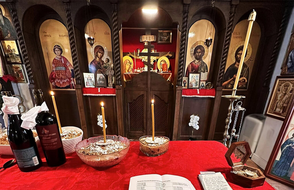 Sur une table commune, les proches des défunts disposent les offrandes : du blé cuit – symbole de la mort et de la promesse de vie éternelle, du pain et du vin, ainsi que des fruits. En plus de ce partage à l’église, les participants à l’office en distribuent aux pauvres et au besogneux. En donnant l'aumône, ils disent "Que Dieu nous pardonne !", dans l’espoir que les péchés des regrettés seront absous.