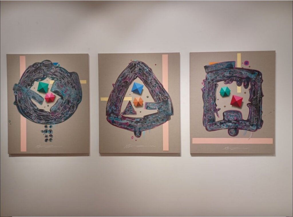 Dans sa nouvelle exposition, Nikolay Bouzov respecte les principes de l’art de la calligraphie, associant dans ses œuvres des symboles et des signes abstraits. Ses toiles sont révélatrices du brio et de la liberté avec lesquels l’artiste conçoit ses structures géométriques.