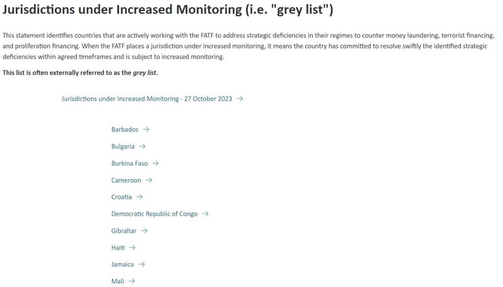 При тези държави са налице "стратегически недостатъци в режимите им за борба с изпирането на пари, финансирането на тероризма и разпространението на оръжия за масово поразяване", но те "работят активно" с Работната група за отстраняването им.