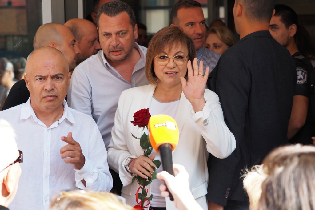 Корнелия Нинова (вдясно) и Георги Свиленски пред централата на БСП - София, 1 септември 2024