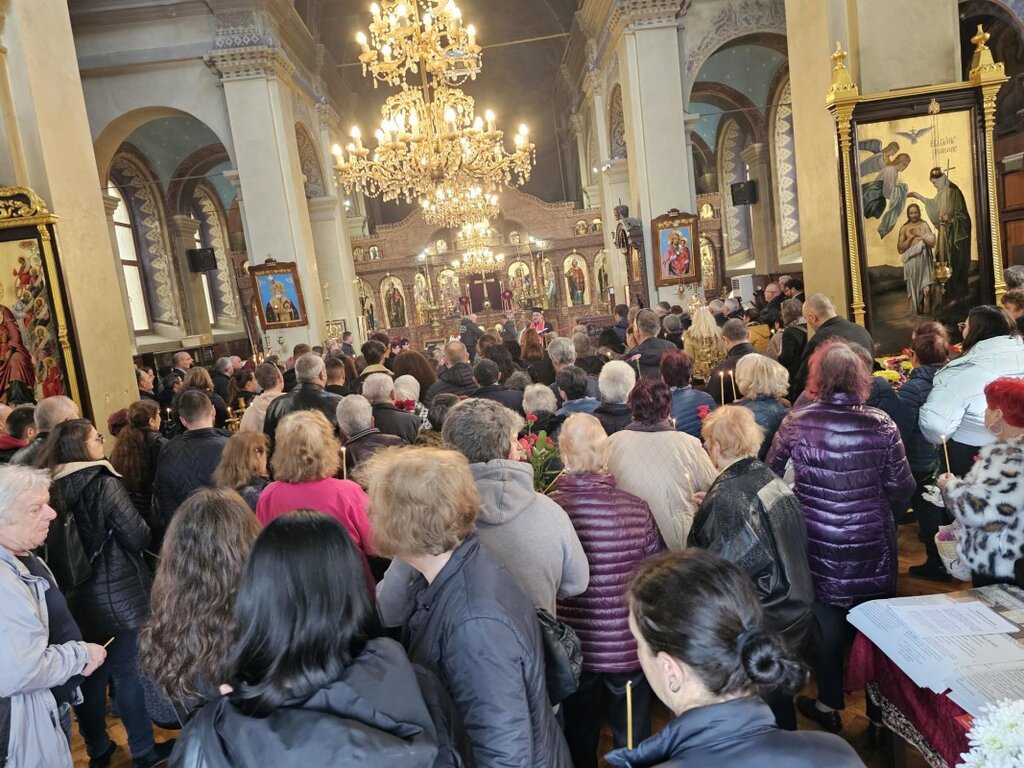 Към 12 часа на поклонението нямаше представители на държавната власт. Тук са роднини, приятели, съседи и колеги на Маринов, които дойдоха да си вземат последно сбогом.