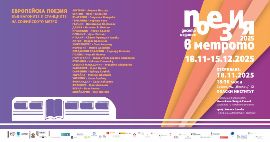 Официалното откриване на десетото издание на проекта "Поезия в метрото" е тази вечер от 18.30 часа в Полския институт в София.