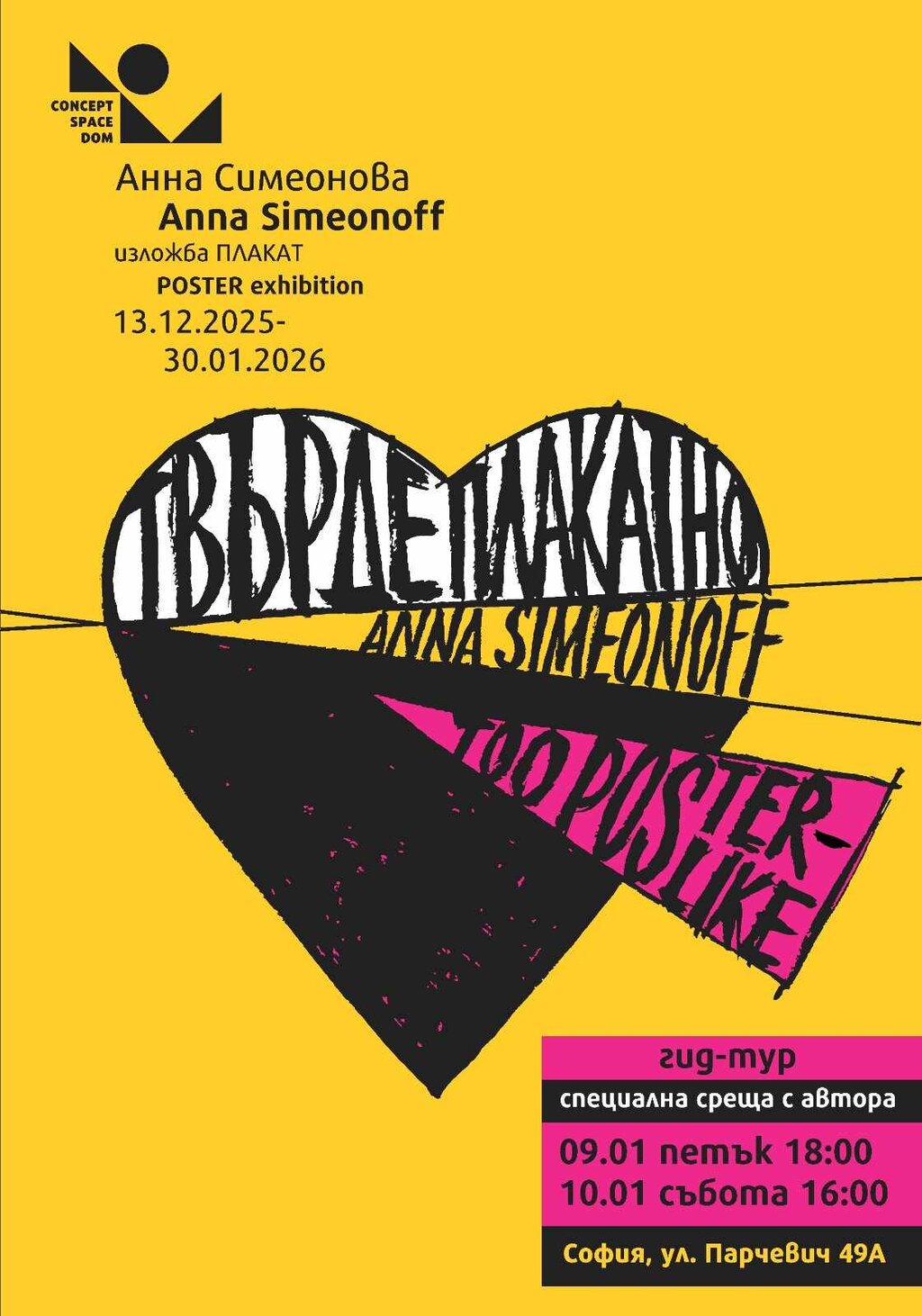 плакатно" представя знакови произведения от последните десет години, създадени от Анна Симеонова. Тя може да бъде видяна до края на месеца в Концептуално пространство ДОМ на улица "Петър Парчевич" 49А в София.