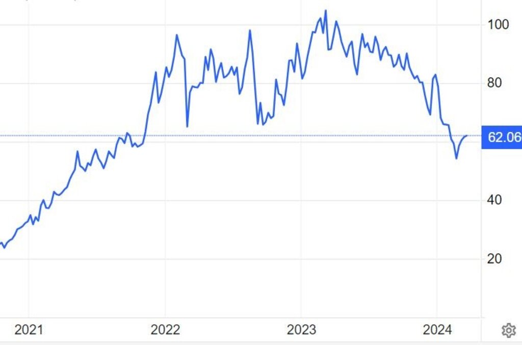 Европейските цени на газа спаднаха с около 15% от началото на 2024 г. поради меката зима и обилното предлагане, като те са с близо 90% по-ниски от рекордно високите стойности, наблюдавани през 2022 г.