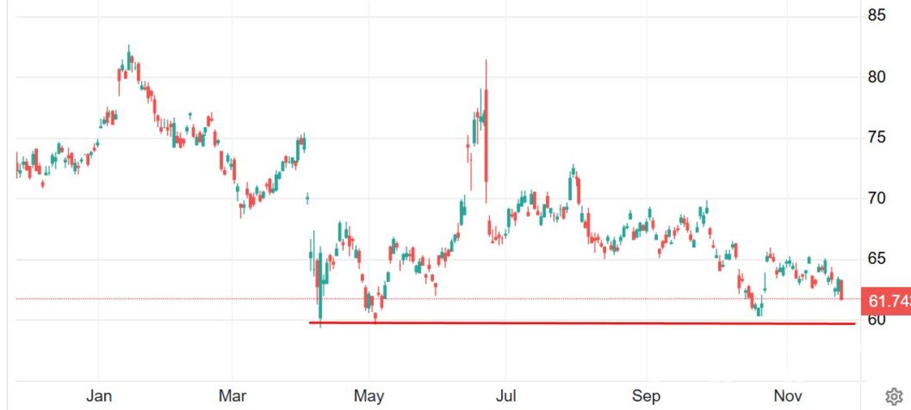 Към 17.15 часа българско време фючърсите на петрол Брент се понижават с 2,5% към 61,75 долара за барел, а тези на американския лек суров петрол WTI с 2,7% към 58,25 долара за барел, достигайки най-ниски ценови нива от 21-ви октомври тази година.