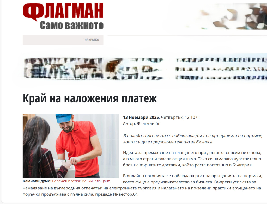 Онлайн търговците в България биха се радвали, ако всички плащания са дигитални, т.е. те биха елиминирали един огромен проблем, произтичащ от "наложения платеж", а именно невзетите пратки”