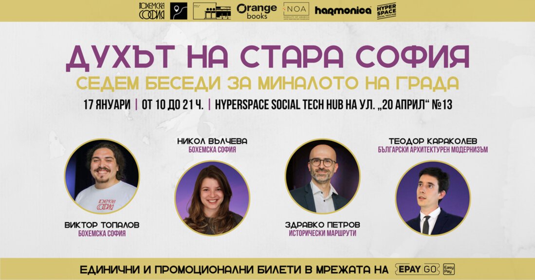 С Виктор Топалов и Никол Вълчева от "Бохемска София" разговаряме в "Нашият ден" за исторически маршрути, бохемски спомени, и какво могат да ни разкрият те за настоящето на столицата. Повод за срещата в ефир е предстоящият цикъл от лекции в рамките на форума "Духът на стара София." – на 17 януари от 10 ч. до 21 ч.