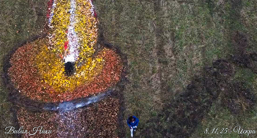 Българската художничка и архитект Вивия Ники представи новото си лендарт произведение – гигантска триизмерна свещ, изрисувана на поляна сред горите на Плана планина, която затрептява като жива само под определен ъгъл, погледната от въздуха. Творбата е създадена изцяло от природни материали: есенни листа, трева и хумус.