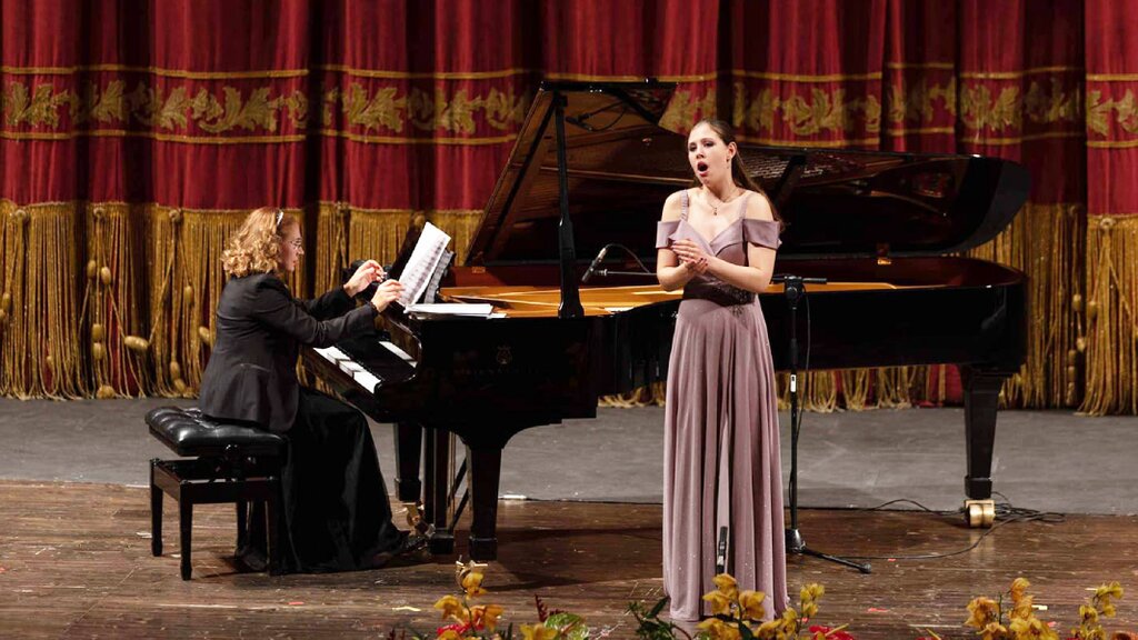 Участие на Алекс в концерт на ученици на Кабаиванска в Италианското посолство в София – 2018 г. Изпълнява Болеро на Елена от "Сицилиански вечерни" на Верди:
