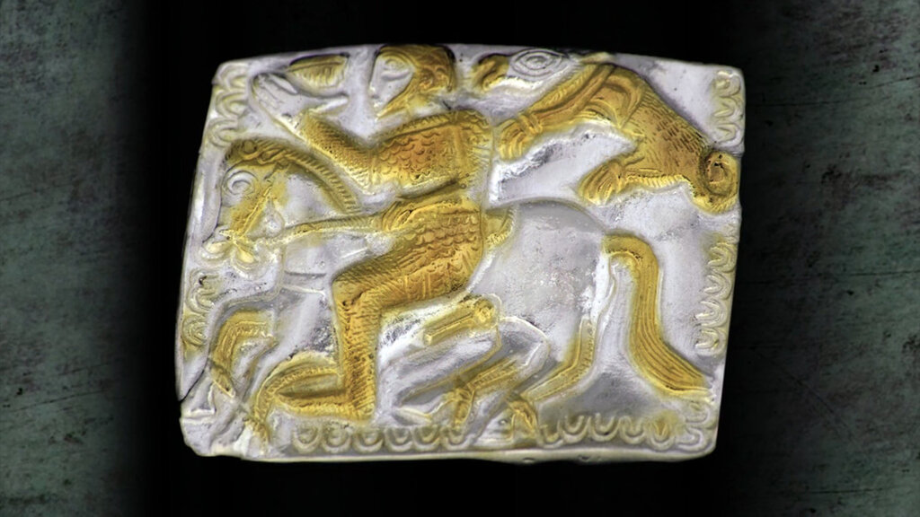 На древних украшениях изображены фракийские всадники в полном боевом снаряжении, включая пластинчатые кирасы (древняя броня, состоящая из маленьких металлических пластинок). Есть также сцены боев животных – двух медведей, сцепившихся в яростной схватке, бросающегося на косулю волка, и грифона, вступившего в поединок со львом.