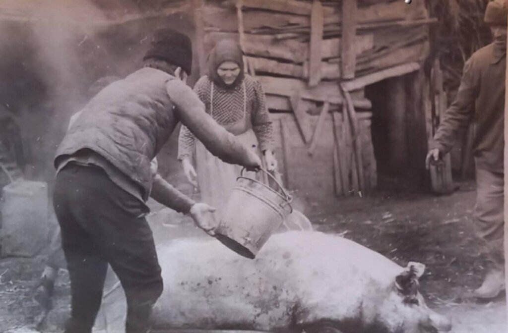 Ditën tjetër, më 26 dhjetor, i gjithë fshati jehohej nga mprehja e thikave – fillonte therja e madhe e derrave. Kjo është kohë e ndarjes komunitare; burrat nderohen me raki të ngrohtë, ndërsa gratë shpërndajnë “prisninë” (mish të freskët dhe dhjamë) për fqinjët që nuk kanë derr. Trashësia e dhjamit ishte krenaria e të zotit të shtëpisë dhe masë e mirëqenies së tij.