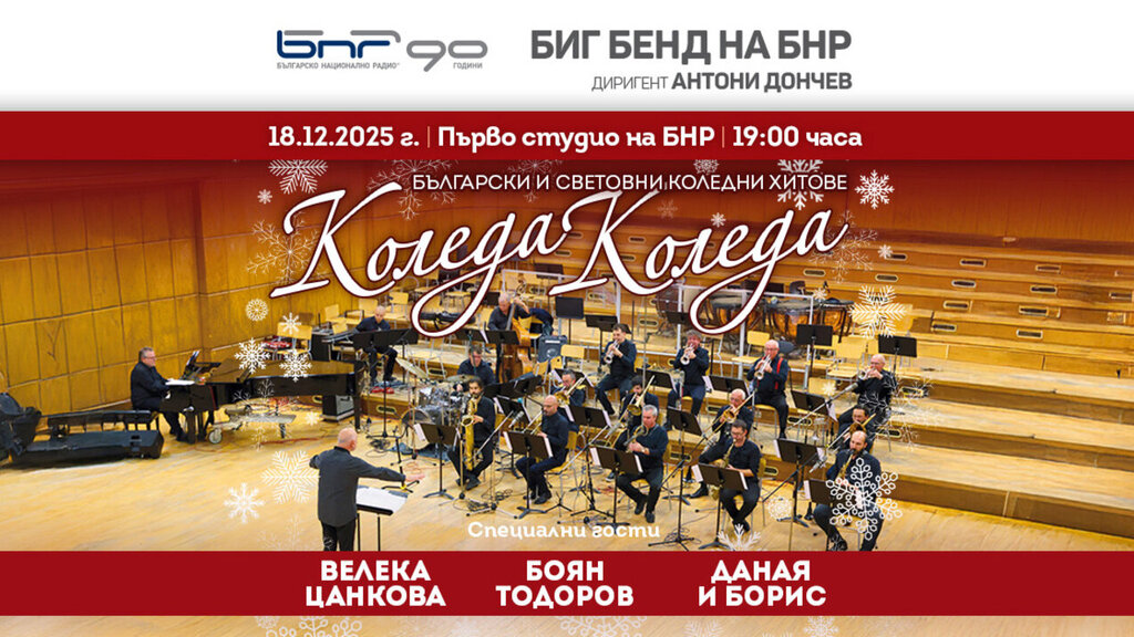 Şef Antoni Donçev yönetimindeki BNR Big Band orkestrası, 18 Aralık'ta Bulgaristan Ulusal Radyosu(BNR)’nun Birinci stüdyosunda Noel konseri verecek. Programda, dünyanın dört bir yanından hit şarkıların yanı sıra yaklaşan Noel bayramı ve Yılbaşı’na adanan popüler Bulgar şarkıları yer alıyor. Bu şarkılar, konserde sahne alacak şarkıcı Veleka Tsankova, aktör ve şarkıcı Boyan Todorov ve vokal pedagojisi öğretmeni Türkan Salı'nın öğrencileri olan on yaşındaki Dana ve Boris tarafından seslendirilecek.