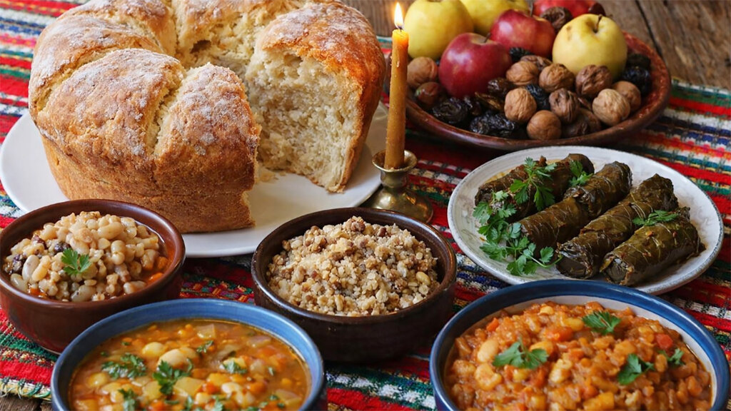 Bu yortu büyük bir sabırsizlıkla bekleniyor, çünkü Noel ile Teofani Yortusu arasındaki “pis” veya “şeytan” günleri olarak adlandırılan çok zor dönemin Teofani Yortusu'nun arifesinde sofraya etsiz yemekler konur. Özellikle darı ekmeği veya mısır çörekleri, bulgurlu lahana sarması, kaynatılmış buğday, fasulye, ceviz ve şaraba ağırlık verilir. Noel ve yeni yıl yortuları arasında, bu son tutsenmiş akşam yemeğidir.