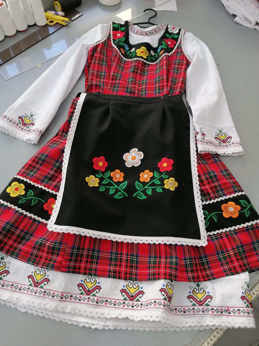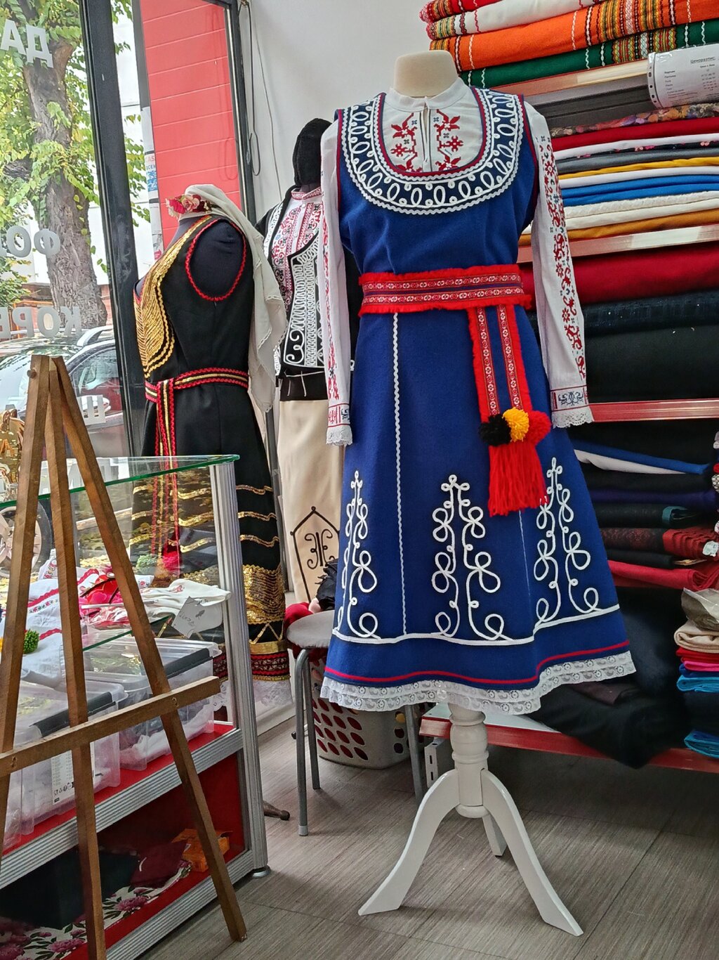 Atölyede giysilerden başka göz kamaştıran halk kıyafetleri de dikilir. “Bu işler için büyük çabalar sarfediyoruz, birçok unsuru elle işliyoruz. Kaytan işlemeli olan ve nakışı makinede yapılan halk kıyafetleri birbirinden çok farklı. Bunu anlayıp değer verenler olduğu gibi, “zaten bir kere giyeceğim, farketmez” diyenler de var. Oysa biz halk kıyafetlerini büyük özenle işliyoruz” diyen Denitsa Panayotova, müşterileri arasında Roza Chanova, “Pırgavelçe” çocuk dans topluluğu, “Gaytani” klübü, “Dobri Voynikov” okumaevi halk şarkıları topluluğu ve “Pçelitsata” ile “Smehorani” ana okullarının yer aldığını, İngiltere, Avusturya, Almanya ve Amerika gibi birçok ülkeye halk kıyafetleri gönderdiklerini söyledi.